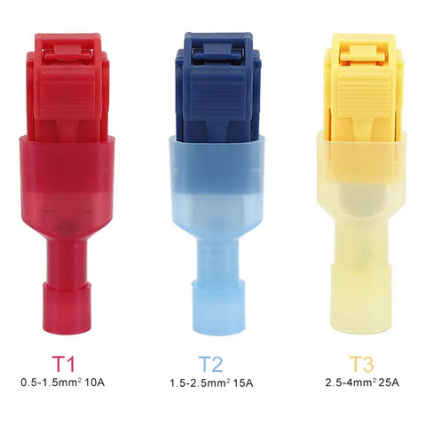 레드 블루 옐로우 셀프 스트리핑 T 탭 전기 절연 압착 단자 빠른 접합 단자 와이어 스플라이스 커넥터